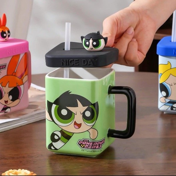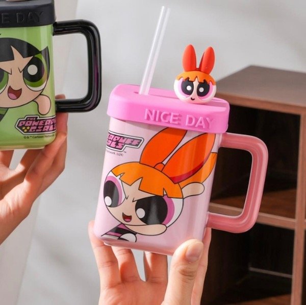 Taza importada de las chicas superpoderosas con tapa y sorbete