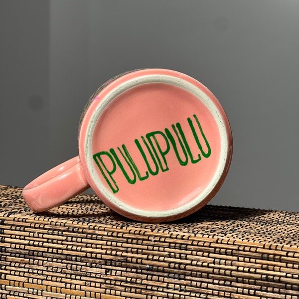 Taza rosa de 360ml pintada a mano con un barnizado y horneado para fijar la pintura y que no se salga con los lavados