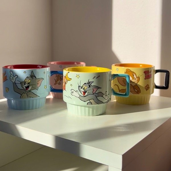 Set de tazas de cerámica apilables importadas de Tom y Jerry